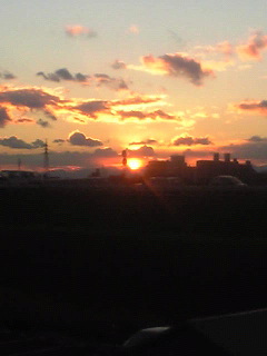 夕日が沈む少し前の赤色の空が、だんだんオレンジ色になり、